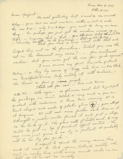 Captain John Ralph Loudon M.D. was stationed in the 116th Field Hospital in the Pacific during World War II. Over 1,000 letters, photographs and other documents have been saved from his time served. These are samples from those archives. New posts will be made frequently. This will be in chronologic order so you can follow along. Blog created by John Ralph Loudon's grandson and great-grandchildren Andy Sherrick, John Loudon Sherrick and Anne Sherrick from Springfield Illinois.